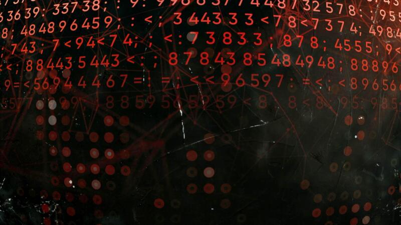 Programming on a black background with red illumination. Motion. Dark background in animation with appearing lines with numbers. Pro Video