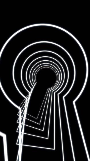 Abstract animation of neon keyhole icon forming the tunnel on black background. Animation. Concept of access Pro Video
