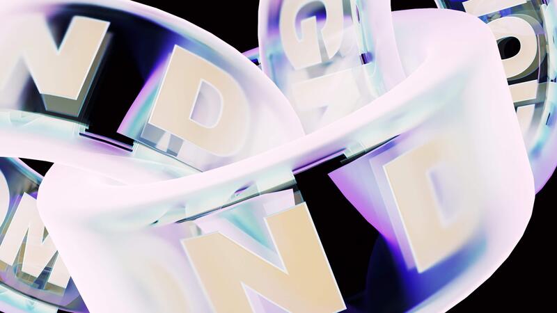 Twisting neon digital tapes with the repeating words motion design. Design. Concept of visual digital art. Pro Video