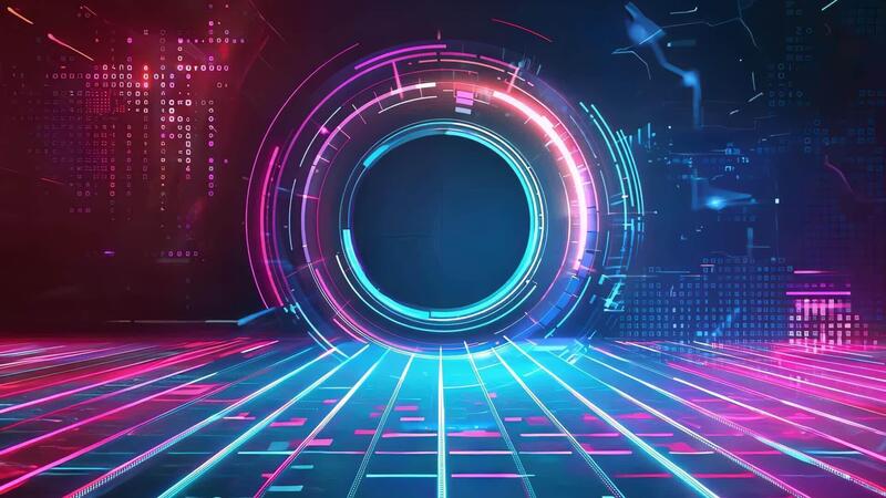 Vibrant abstract technology background with glowing circular elements and neon lines, perfect for digital art and design projects. Free Video