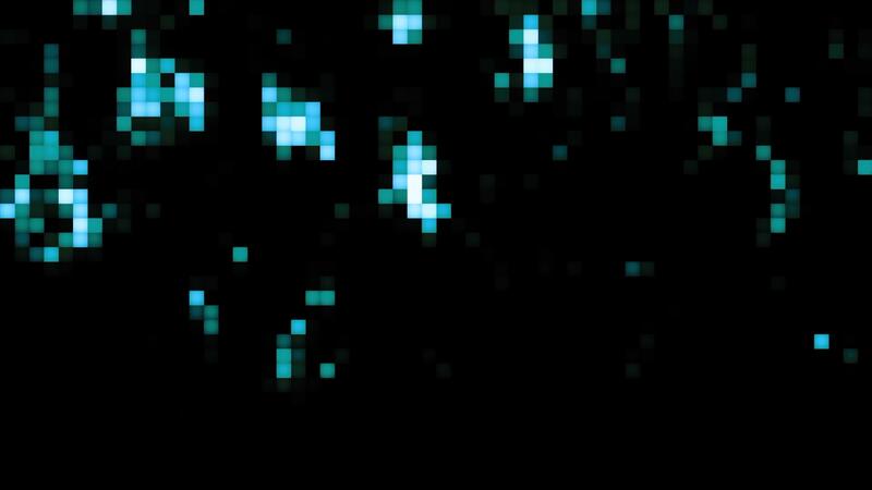 Pixelated pattern with blue shimmering squares slowly falling down. Motion. Retro game design on a monitor. Pro Video