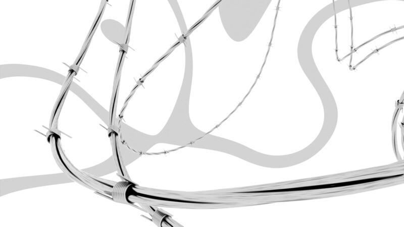 Animation with 3d wire and lines. Design. 3D wire with barbed needles on background of lines. Barbed wire for prison walls Pro Video