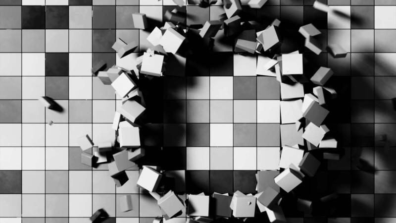 3D background with squares and wave rings. Design. Squares move in space with 3D distortion. Ring 3d waves of destroyed squares with background Pro Video