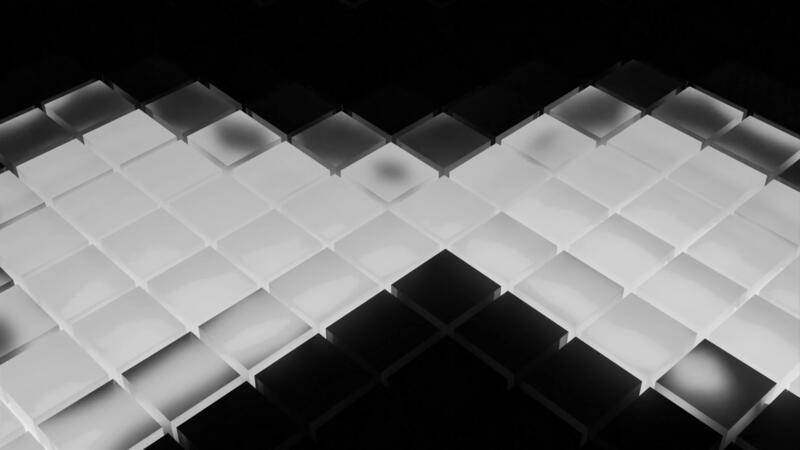 Surfaces with moving flashing squares on black background. Design. Glowing music buttons move in dark. Flashing square buttons glow and move on surface Pro Video