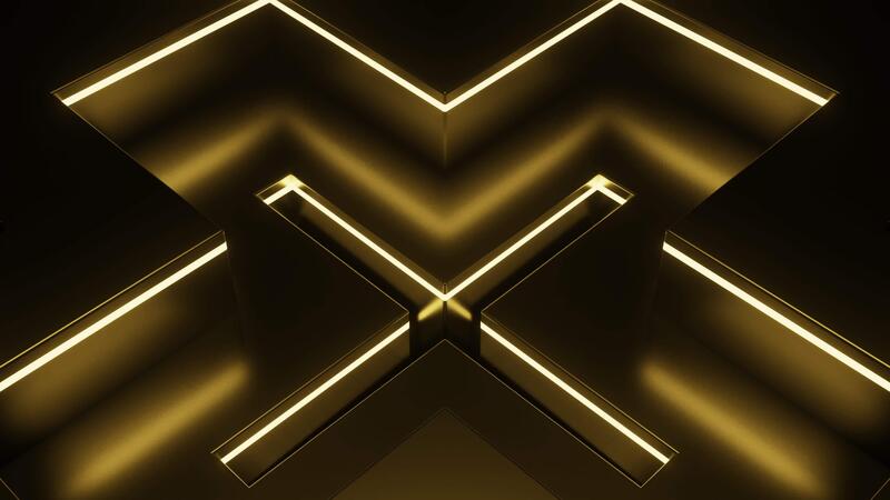 Abstract technology background with bright neon lights. Design. Bright geometric pattern with a cross shape creating optical illusion effect . Pro Video