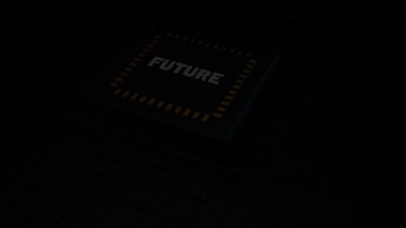 Abstract micro chip with the word future. Design. Visualization of a modern circuit board. Pro Video
