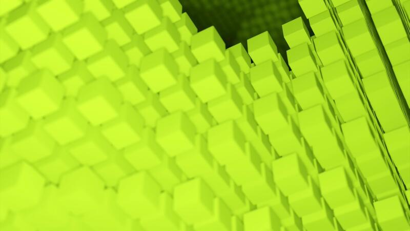 Abstract 3D structure of neon cubes formations flowing on a black background. Design. Waving texture of cubes. Pro Video