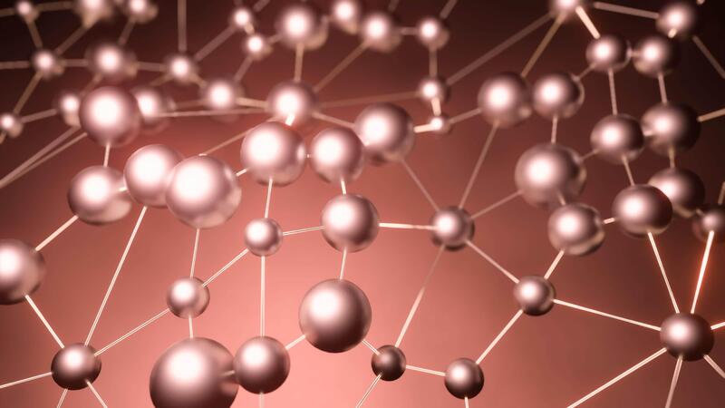 Geometric background of slowly moving spheres connected by lines. Design. Waving abstract technological spider web. Pro Video