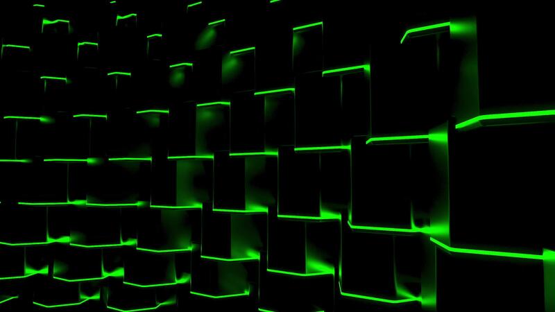 Rows of squares with neon lines are moving in stream. Motion. 3D cubes move in wave flow. Black squares with neon lines move in wave Pro Video
