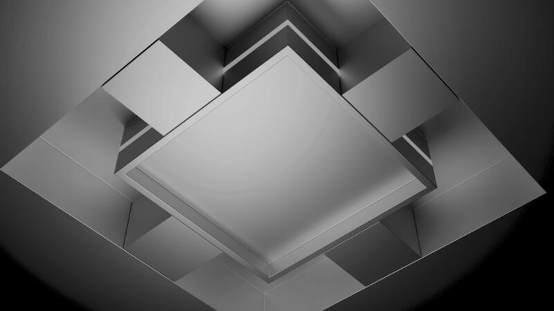 Gray background. Design. A large square of light shades around small squares that move in a circle in abstraction. Pro Video
