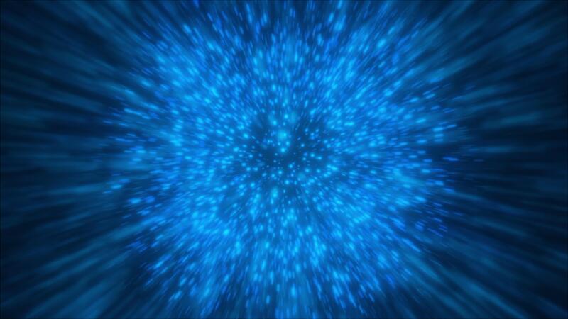 Blue neon core spreading and consuming space energy with moving particles. Motion. Abstract exploding sphere. Pro Video