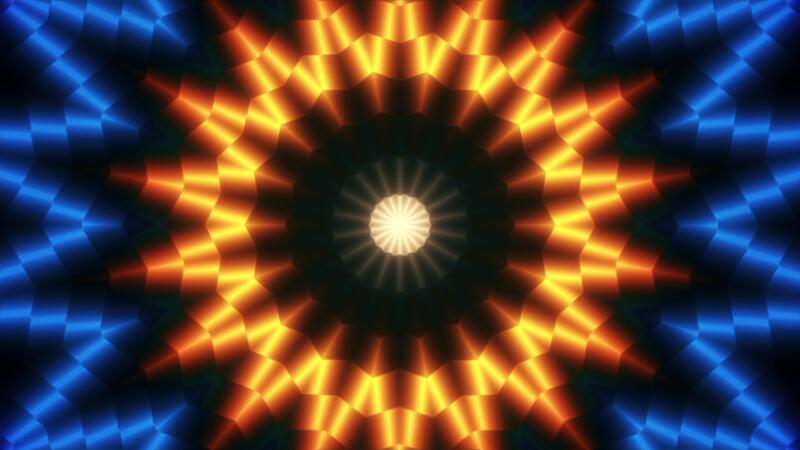 Kaleidoscope effect. Motion. Bright light and dark rays of light change their directions and patterns in abstraction. Pro Video