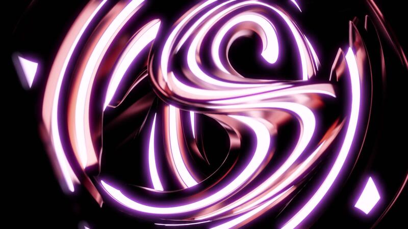 Rotating abstract ball with curved neon lines. Design. Futuristic structure rotates with neon curves shedding on black background. Abstract ball of curved lines and glowing neon Pro Video