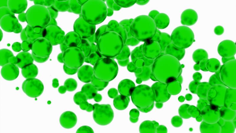 White background. Design.Green and red circles flying up quickly created in computer graphics. Pro Video