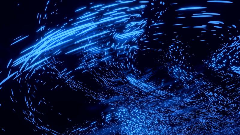 Abstract stream of colorful particles. Design. 3D futuristic background with abstract movement of blue neon dots. Pro Video
