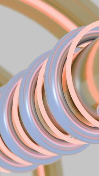 Tunnel with metal pipe and moving spirals. Design. Metal pipe into tunnel with rotating neon lines. Neon and metal lines move in spirals on pipe in tunnel Pro Video