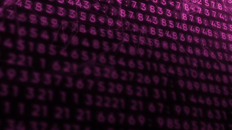 Background of set of numbers with highlighted. Motion. Set of program numbers in stream with certain numerical values. Numeric codes with glowing digits Pro Video