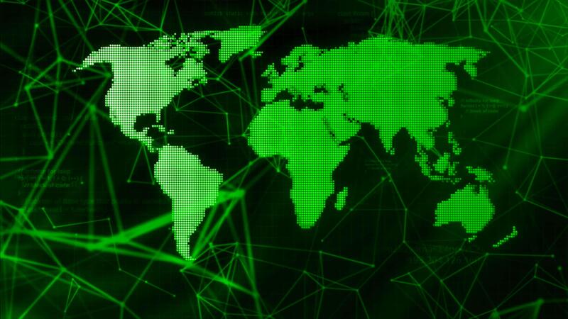 Pulsating dots on world map. Motion. Holographic map of world with electronic dots. Dots vibrate on world map Pro Video