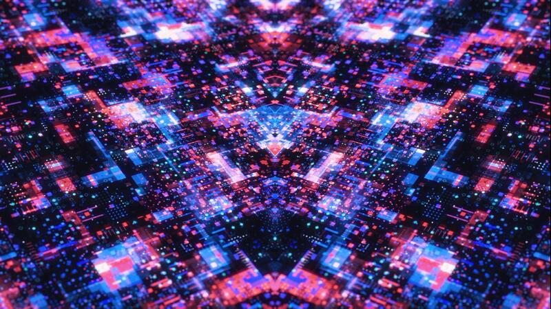 Pixelated pattern with blue and pink shimmering squares slowly moving and creating digital field. Motion. Concept of internet and digital world. Pro Video