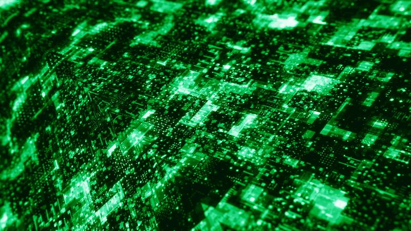 Abstract digital data background. Motion. Colorful digital space background with the motion of shiny particles. Pro Video