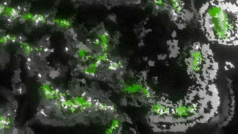 Black background with glowing green and gray beads. Motion. Dark animation with sparkling different shades looking like blobs. Pro Video
