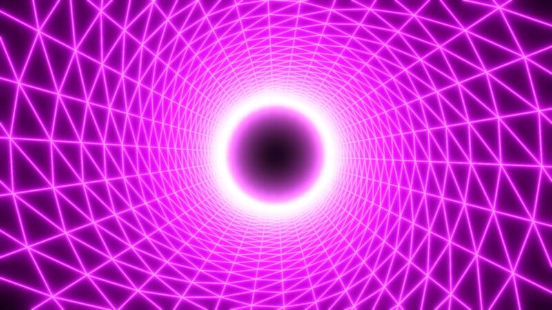 Blue and pink background. Motion.A bright tunnel made of a grid on a black background that moves deep into the 3D format. Pro Video