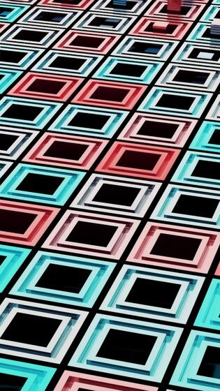 Abstract colorful surface with square shaped holes and growing pillars from each of them. Design. 3D texture with colorful rectangles. Pro Video