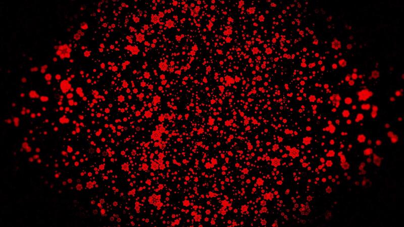 Abstract shining red particles flying on a black background. Motion. Tiny particles looking like snowflakes. Pro Video