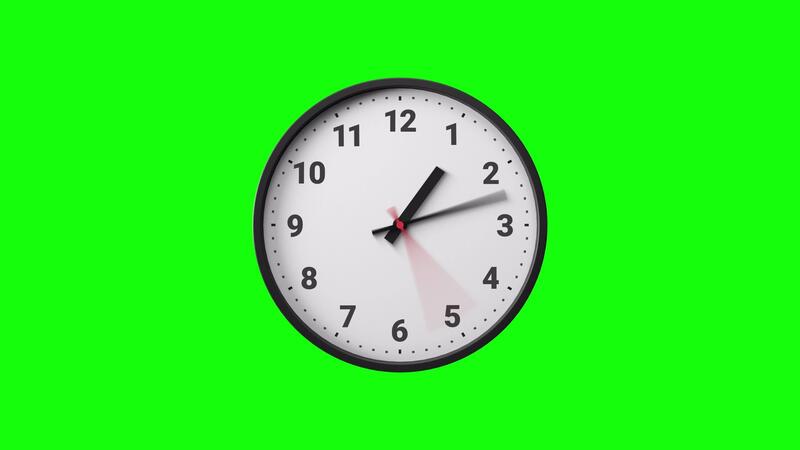 Clock Timelapse Greenscreen Alpha Loop. Fast movement of clock hands motion blur. Black and White Analog Wall Clock Isolated. Time Passing Fast. 12 Hours Classic Clock Timelapse Pro Video