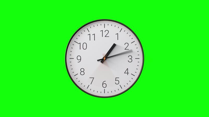 Clock Timelapse Greenscreen Alpha Loop. Fast movement of clock hands motion blur. Black and White Analog Wall Clock Isolated. Time Passing Fast. 12 Hours Classic Clock Time-lapse Pro Video