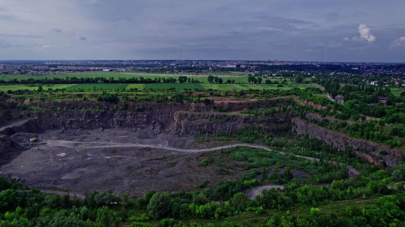 Panorama aerial view open-pit mine showing the various layers of quarrying Pro Video