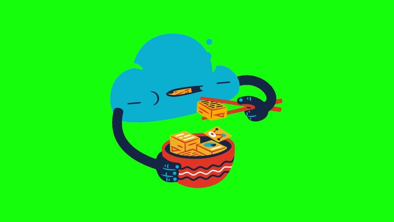 Cloud Uploading Data from Food Bowl Using Chopsticks on green screen animation Free Video