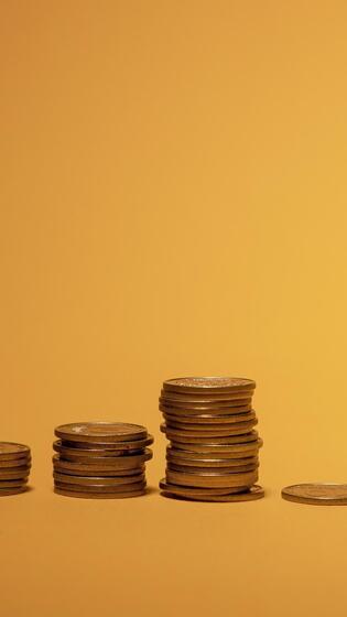 Several stacks of coins are neatly organized in ascending order on a vibrant yellow background, symbolizing financial growth and investment. The arrangement highlights different levels of wealth. Pro Video