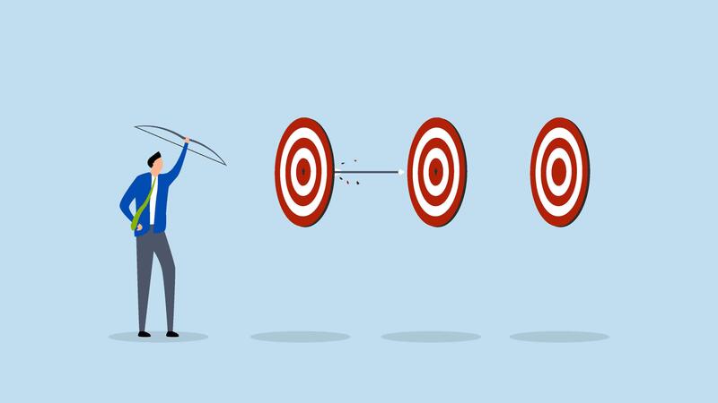 Completed multiple tasks with single action, 4k animation of Intelligent entrepreneur excelled in archery by hitting multiple bullseyes with a single arrow. Pro Video