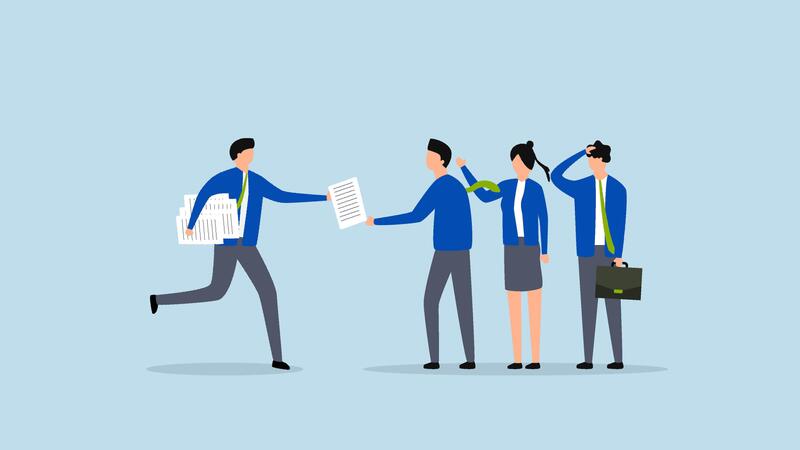 Work delegation, 4k animation of Businessman delegates project assignment to team as a manager. Pro Video