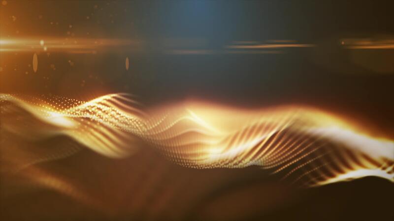 A smooth wave of golden particles on a dark background, with a warm, glowing effect, symbolizing energy or data flow, in high quality 4k, motion design Free Video