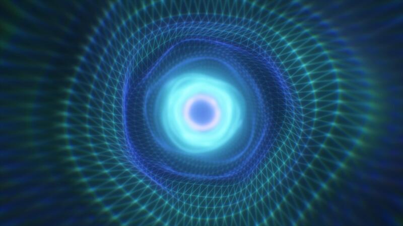 A glowing blue vortex with geometric wireframe patterns converging toward the center, creating a futuristic and digital abstract tunnel tech sci-fi effect Free Video