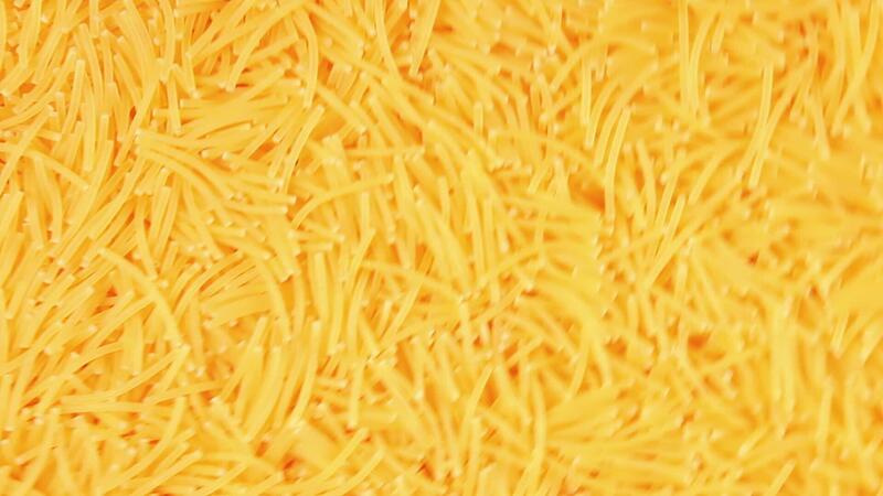Background of Uncooked Noodles Rotating Clockwise - Top View, Angular Rotation. Texture of Dry Vermicelli Turning Around. Raw Pasta - Right Rotation Pro Video