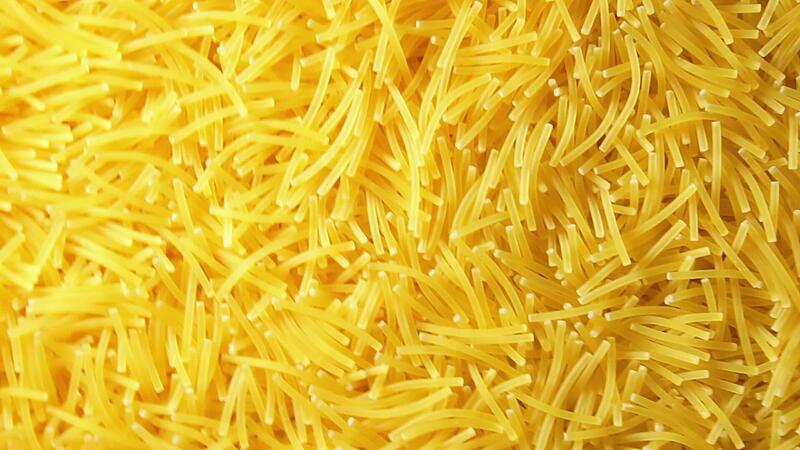Background of Uncooked Noodles that Slowly Rotating Counter-Clockwise - Top View, Angular Rotation. Texture of Dry Vermicelli Turning Around. Raw Pasta - Left Rotation Pro Video