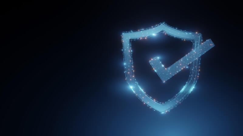 Digital shield with checkmark symbolizing security and protection Pro Video