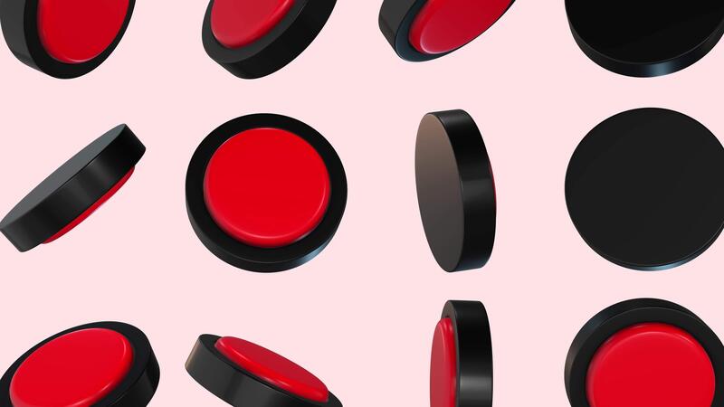 3D Red Push Buttons Falling Animation. Red Switch Buttons 3D. 4K Pro Video