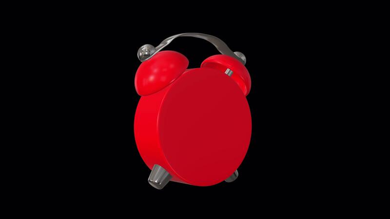 3D Alarm Clock Rotating on a Transparent Background. Seamless Loop. 4K Pro Video