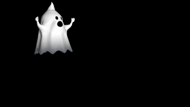 Little white ghost screaming while floating from left to right against transparent background. 3D Animation Pro Video