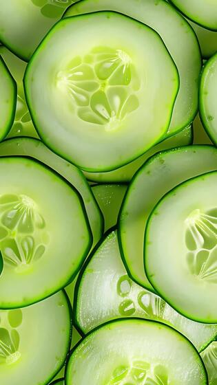 Rotating background of sliced cucumber, Close up, Slow motion Pro Video