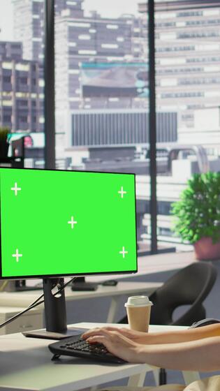 Vertical Developer using multi monitor isolated screen PC to create machine learning models that can process data to automate decision making processes. Woman programming using mockup computer, camera B Pro Video