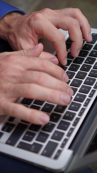 A closeup view of hands actively typing on a laptops keyboard while engaged in work Pro Video