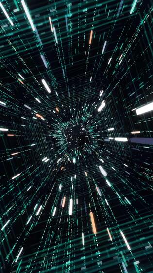 Cyber square tunnel with neon stripes. Animation. Hypnotic effect of diving into cyber space through tunnel with neon stripes and stream of shining lines Pro Video