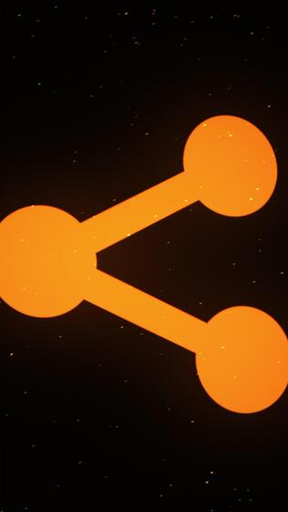 Digital animation of Share button decaying into multicolored moving plexus networks on black background. animation. Animation. Technology, social media and internet backdrop. Pro Video