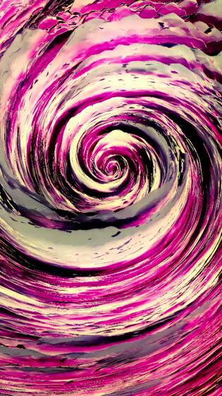 Abstract white, black, and pink 3D spiral shaped tornado with unusual transforming texture, seamless loop. Motion. Top view of water like swirl in endless spinning motion. Pro Video