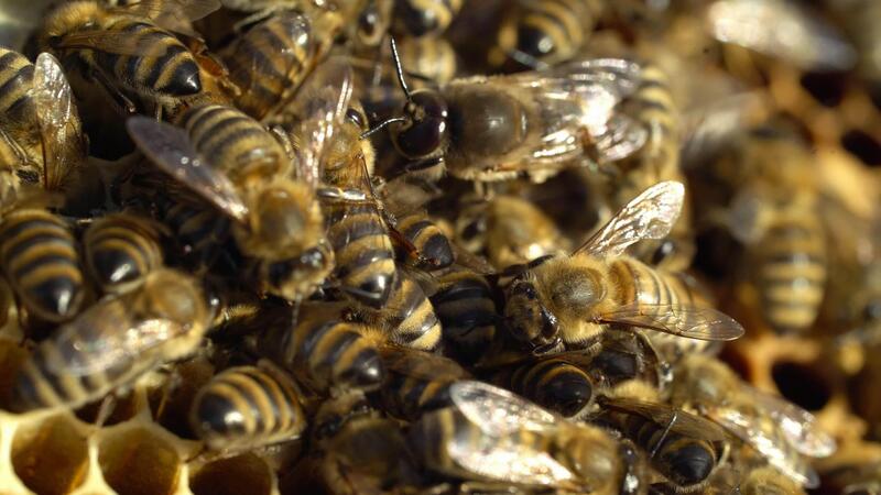 Close up view of the working bees on honey cells. Working bees on honeycomb. Bees on honeycombs Pro Video